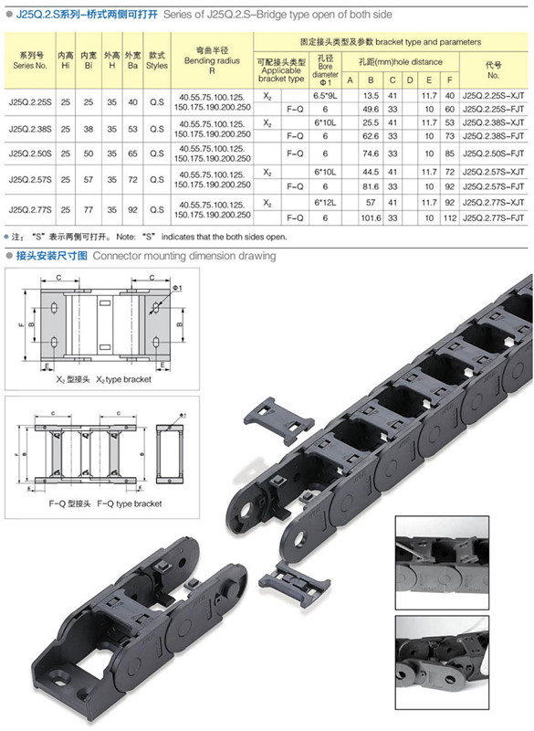 拖鏈尺寸:內(nèi)徑高度*內(nèi)徑寬度(毫米)